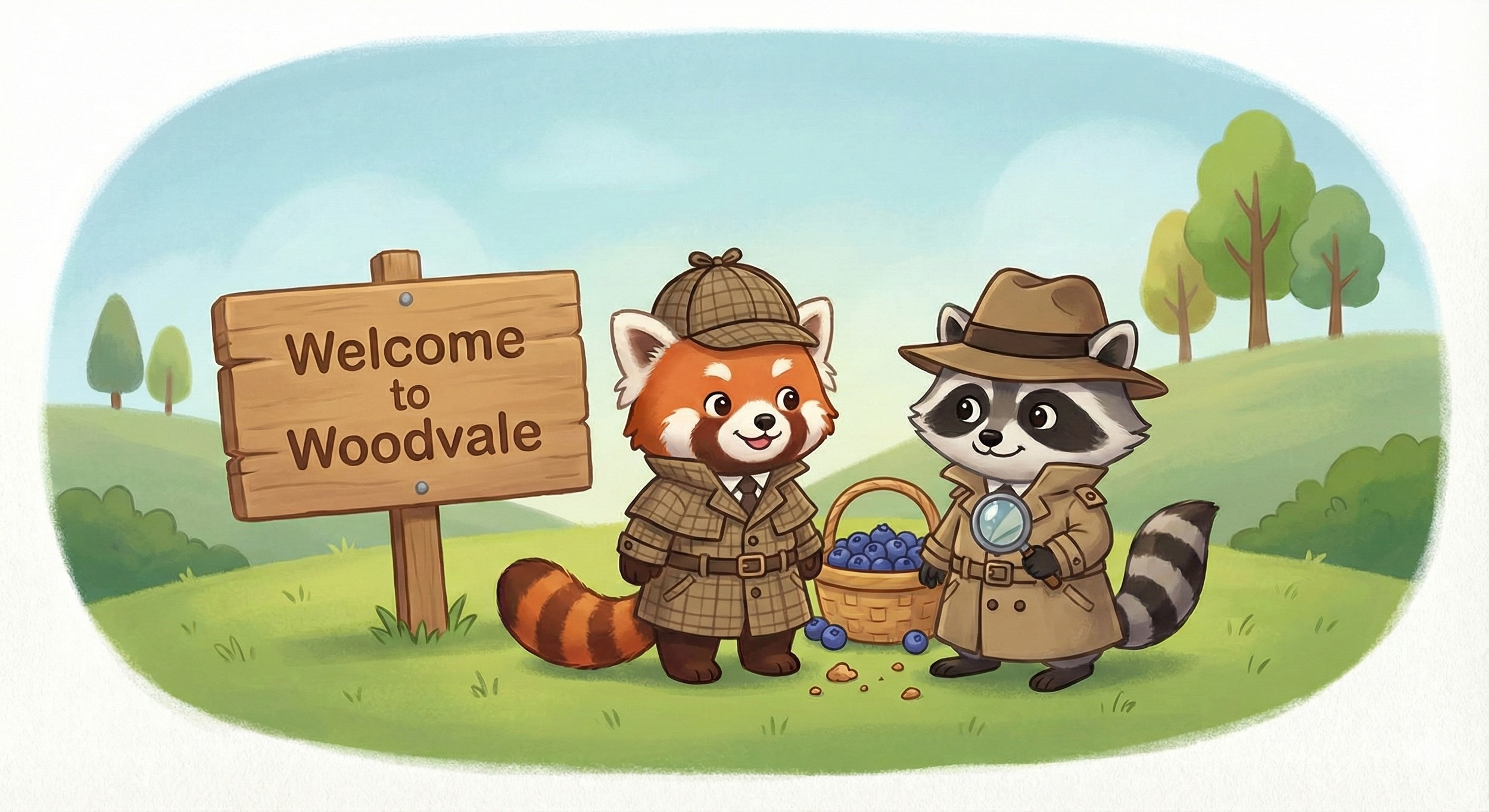 The first case Rusty and Shadow undertake is the Hallowed Harvest Heist. On the eve of the Woodvale Harvest Festival, the town is thrown into a panic when Mrs. Higgins' legendary Hallowed Star-Berries—the essential ingredient for her prize-winning pie—vanish overnight. Rusty the Red Panda and his tech-savvy partner, Shadow the Raccoon, take the case, uncovering clues ranging from suspicious purple smears to mysterious black fur. The investigation leads them to a surprising culprit and a secret lab! Can Rusty and Shadow crack this case and save the Woodvale Harvest Festival? Find out by joining the waiting list!